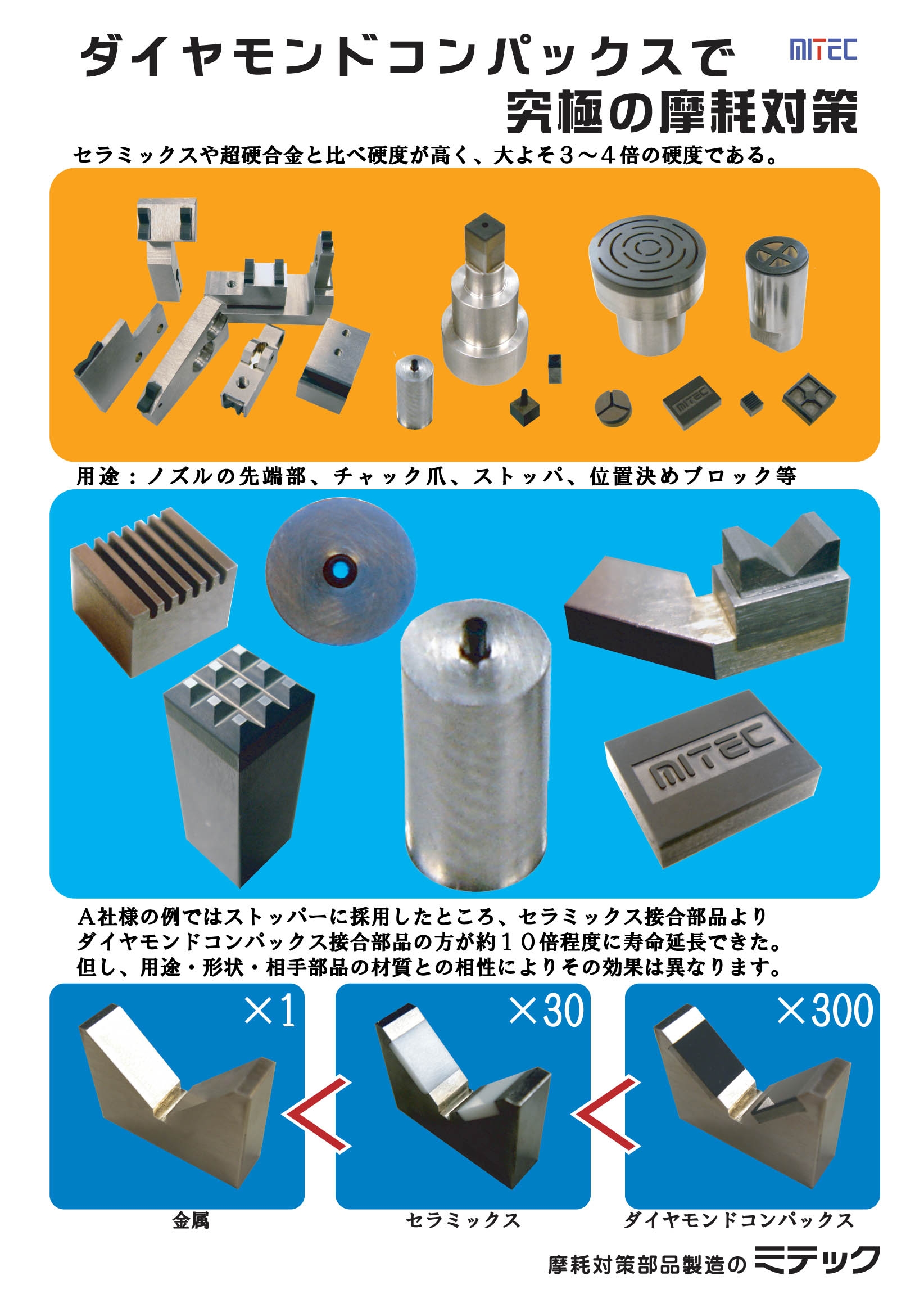 金属部品の10倍から100倍に寿命を延長出来る。