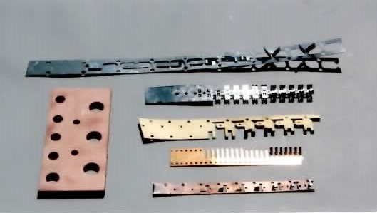 - 0.1mmのリン青銅順送プレスから8mm銅の総抜き部品加工、0.4mmステンレス301EH順送型などあらゆる物に対応しています。ご相談下さい。