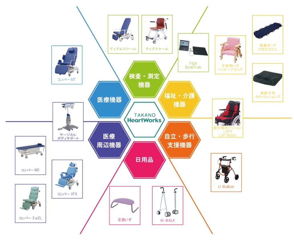 - ばねの製造に始まり、オフィスチェア・エクステリア製品へ。そして、先進のエレクトロニクス関連事業、さらには今後需要の拡大が見込まれる福祉・医療機器関連事業への参入を実現。常に新しい開発にチャレンジ。
