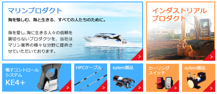 - 当社はマリーン・インダストリアル用コントロールシステムの総合メーカーです。メカニカル、油圧、エレクトロニクスを融合したリモートコントロールの総合システム開発を進め、“より良く、より安く”をモットーに製品を提供できる万全な体制や販売体制などでグローバル化を推進しています。