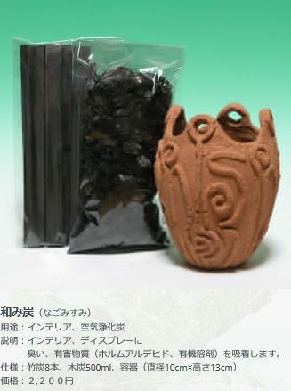 - 竹、カラマツ、アカマツなどの間伐材を利用した水質浄化炭「沈水炭」を開発。